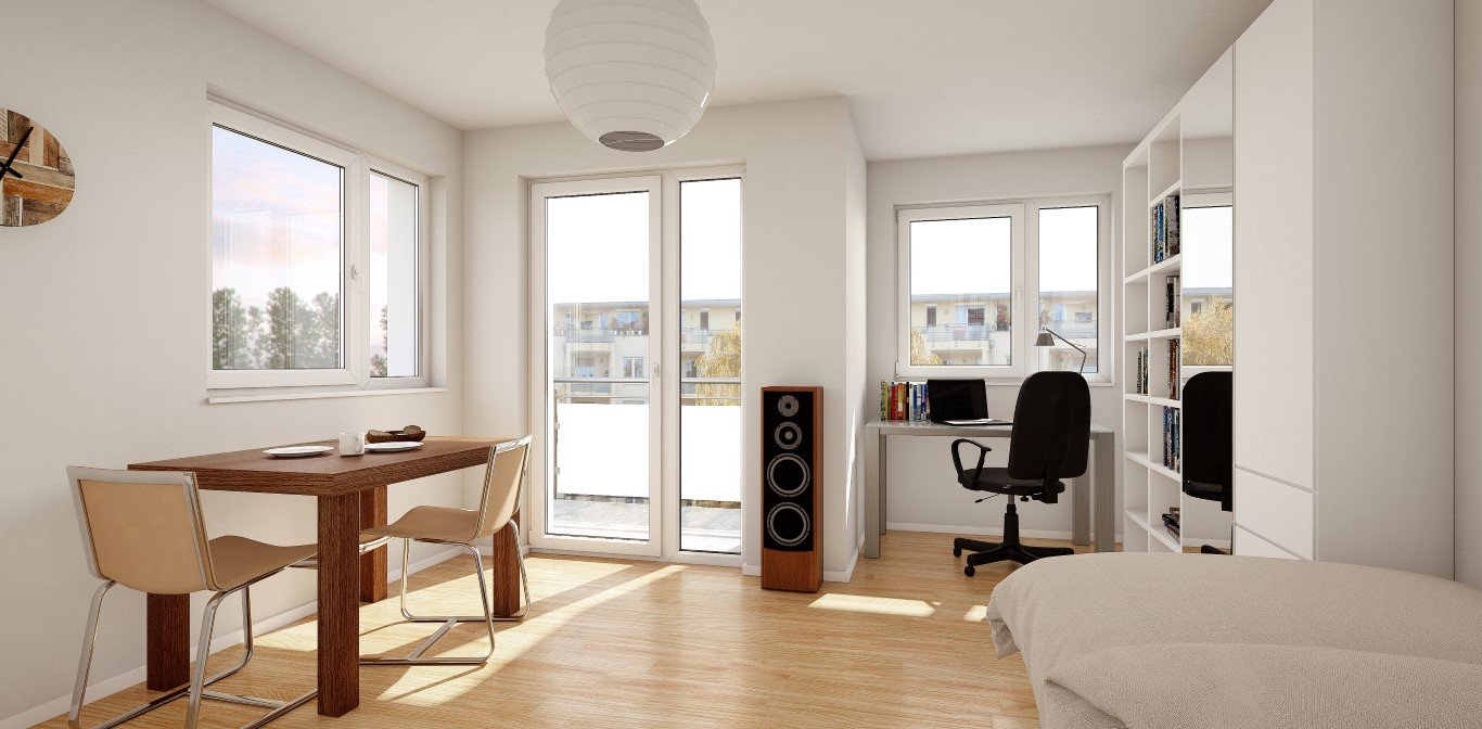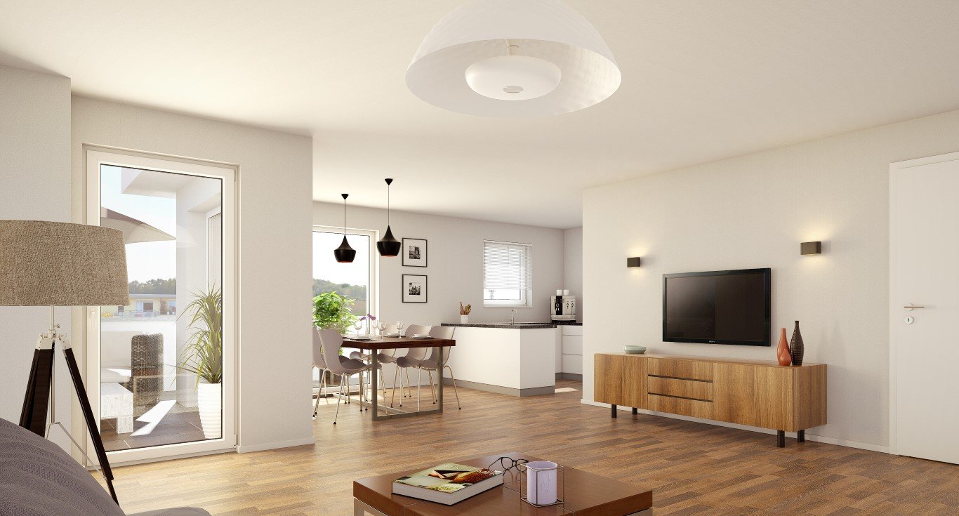 Jede Wohnung besitzt eine gut durchdachte Raumaufteilung mit hellen Lichtverhältnissen. Alle Wohnungen besitzen je nach ihrer Größe entweder einen Balkon oder eine Dachterrasse mit einem Weitblick wahlweise über die historische Altstadt von Freiburg oder in das schöne Umland. Ein Aufzug führt von der Tiefgarage direkt an jede Wohnung. Eine hochwertige Einbauküche mit energiesparenden Geräten, eine Fußbodenheizung und ein Energiekonzept mit zentraler Wärmeversorgung rundet das Bild energetisch ab. Die neu erstellten Wohnungen erfüllen die Bauvorgabe eines KfW-55 Effizienzhauses, d.h. nach derzeitigem Stand ergibt sich zzgl. zu geringen Wohnnebenkosten ein staatlich geförderter Tilgungszuschuss je Wohnung.